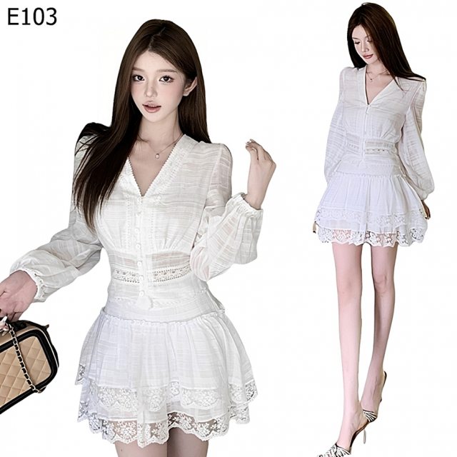 厭倦了千篇一律的洋裝嗎?這款「初戀系仙女」蕾絲套裝,將帶妳重回初戀般的悸動!它不只是一件白色的套裝,更是充滿細節與巧思的夢幻單品。我們在上衣運用了多種蕾絲拼接,創造出層次豐富的透膚感,讓妳在甜美中帶點小性感。高腰的娃娃裙設計,能瞬間拉高妳的腰線,讓妳的腿長度像是加了特效!而最讓人心動的是,蓬鬆的裙襬,讓妳無論是約會還是出遊,每一步都充滿活潑氣息。穿上它,妳就是那個讓所有人都心動的初戀系仙女!