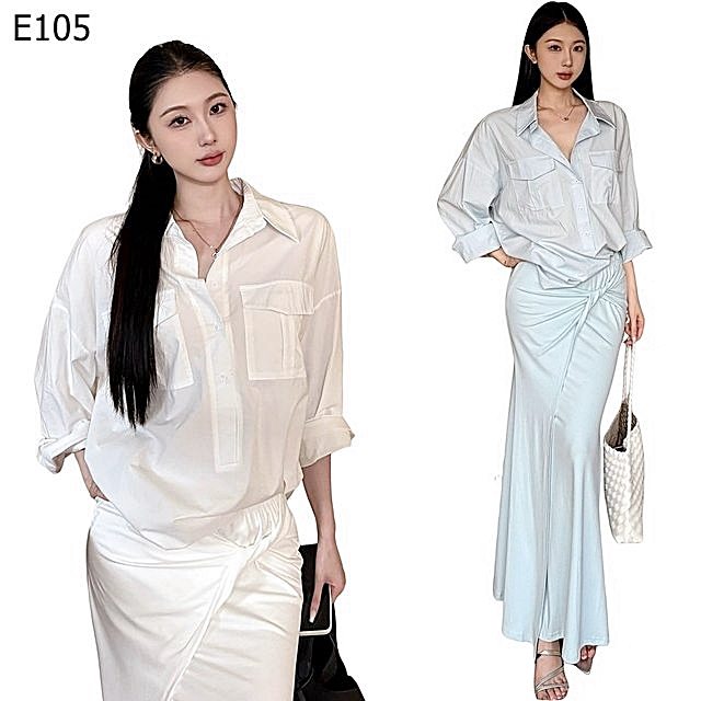 厭倦了基本款的襯衫和長裙嗎?這款獨特的法式風扭結魚尾裙套裝,將慵懶隨性的風格提升到全新層次。我們將法式襯衫的寬鬆舒適,結合了設計感十足的扭結魚尾裙,打造出既優雅又帶點俏皮的獨特魅力。特別值得一提的是,裙子的扭結設計不只美觀,更能巧妙地收束腰部線條,搭配高腰版型,讓您的雙腿看起來更修長。無論是優雅的純白色還是清新的天空藍色,都能讓您散發出不經意的時尚感。這是一套專為懂得生活、追求質感,又不願被潮流束縛的您所設計的單品。