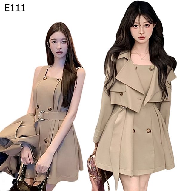 告別單調穿搭,迎接屬於妳的風格新篇章!這款精心設計的兩件式風衣套裝,完美結合了風衣的帥氣與洋裝的柔美。它不僅僅是一件衣服,更是妳展現時尚態度的百變夥伴。