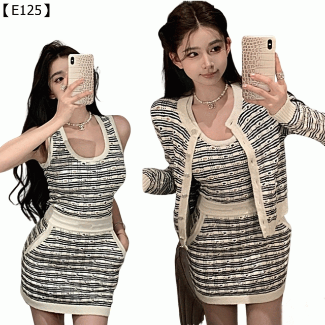 這套針織2件式套裝,簡直是懶人穿搭的救星!不用煩惱怎麼搭配,一件搞定所有場合。獨特的菱格紋針織面料,搭配小香風設計,讓你隨時散發精緻氣場。背心和短裙的組合,不僅顯高又顯瘦,單穿就很有型;配上同色系外套,瞬間層次感UP,保暖又時尚。這套穿上就是時髦精本人,無論是約會、逛街還是朋友聚會,你絕對是全場焦點!