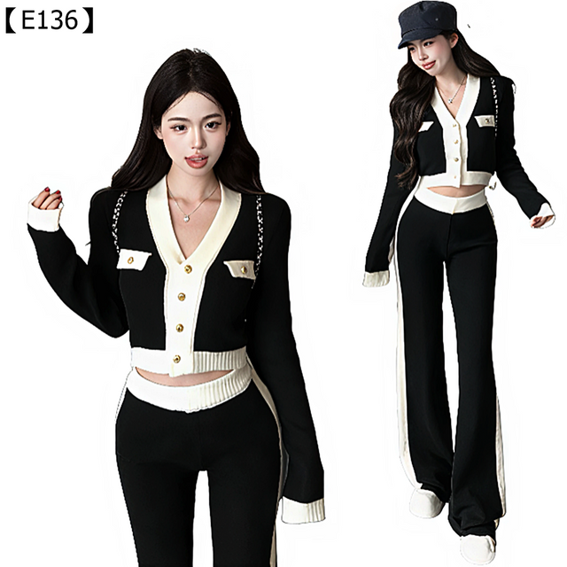 厭倦了正經的小香風?這套是為追求時髦又不想被定義的妳準備的!它巧妙地融合了法式復古的優雅與街頭辣妹的率性。短版 V 領針織開衫不僅顯臉小,還能大方展現妳的腰部曲線;而高腰微喇叭的闊腿長褲更是藏肉顯腿長的頂級單品。最特別的是褲子側邊的撞色滾邊,讓妳走起路來線條感十足,充滿動感。這套 Two - Piece 讓妳不用費力搭配,一套上身就能成為自帶流量的時尚指標!