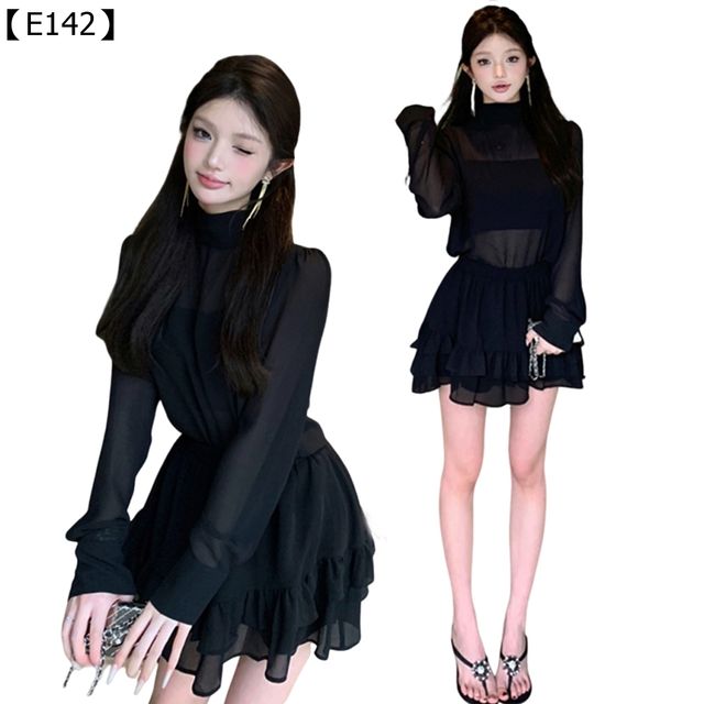 厭倦了一成不變的「小黑裙」嗎? 試試這款專為不甘平凡的妳設計的**【暗黑甜心雪紡套裝】!它不只是單純的黑色洋裝,而是運用了「微透視」和「荷葉邊」的碰撞哲學。上半身若隱若現的雪紡,在安全範圍內釋放你的小性感,而層層疊疊的動感荷葉短裙則注入了滿滿的青春活力。重點是,這是兩件式設計**!你可以把上衣搭上你的牛仔褲變身帥氣女孩,或把短裙換搭T恤變身街頭甜心。一件衣服,N種可能,讓你的衣櫃不再只有單調的選項。想在派對上閃耀,或在美術館裡展現藝術氣息?它都能完美駕馭,讓「活潑辣度」成為你的時尚代名詞!