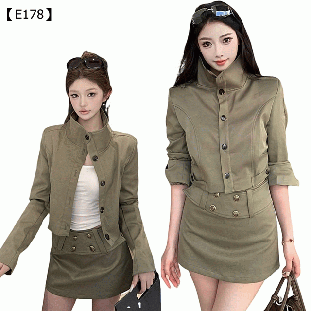 膩煩了甜膩的公主風?是時候讓衣櫥來點硬核的甜酷感!這款「立領短夾克高腰套裝」將街頭的軍裝元素和女性的俐落剪裁完美結合。短版上衣的立體立領設計是整套的靈魂,讓妳在視覺上拉長頸部線條,看起來自信又時髦。下身的高腰A字短裙完美包覆臀部線條,同時利用雙排釦創造視覺焦點,讓妳的腰線和腿長都達到最佳狀態。它不僅僅是一套衣服,更是一種無畏又充滿活力的時尚態度,穿上它,妳就是街頭最亮眼的行動焦點!