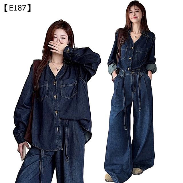襯衫的寬鬆落肩設計,讓你告別肩膀束縛;而這條高腰綁帶闊腿褲,更是為亞洲女孩量身打造的**「比例重塑器」**——它拉高你的腰線,用誇張的褲腳遮蔽一切腿部缺點,讓你擁有媲美超模的黃金比例。