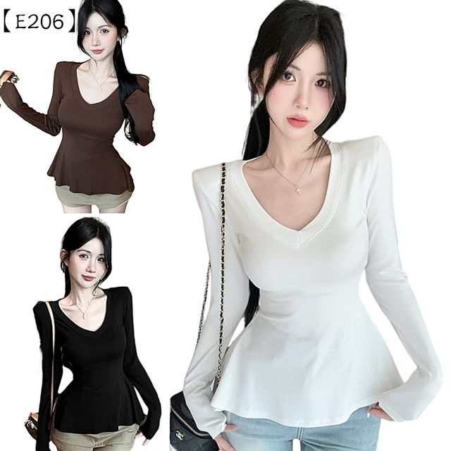 穿上它,緊緻的版型立刻為妳塑造出沙漏型曲線,而下擺俏皮的小裙襬設計,則能完美地遮蓋住妳最在意的肉肉,讓妳看起來又瘦又甜!再搭配那個大方展現鎖骨的V領,性感得毫不費力。無論是單穿配高腰牛仔褲,或是作為外套的內搭,它都是讓妳看起來比別人更瘦、更有氣質的秘密武器!