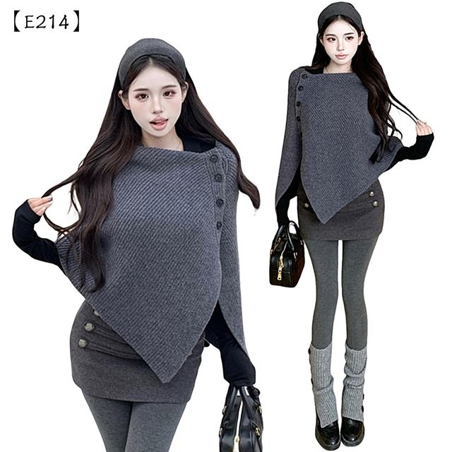 厭倦了秋冬只有羽絨外套和長褲嗎?是時候給自己一點**「高級感的小任性」了!這套【不規則斜襟斗篷+高腰短裙套裝】**就是為追求效率與時尚的妳量身打造!