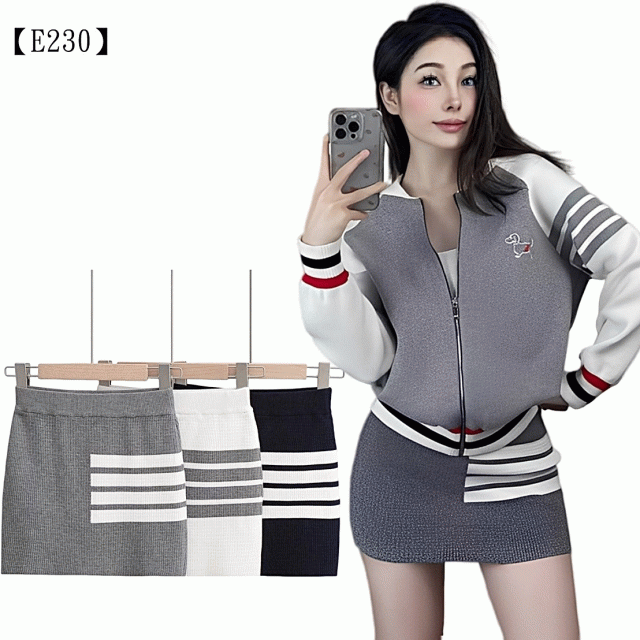 誰說針織短裙只能是乖乖牌?這款「活力四射四條紋短裙」,就是要你把**「青春運動風」穿出「時髦辣妹感」**!