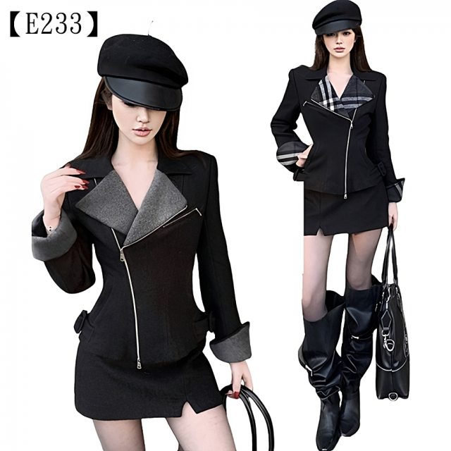 妳衣櫥裡還缺一套能讓妳**「酷甜叛逆」**的戰袍嗎?這套【拉鍊騎士西裝套裝】絕對能滿足妳!
