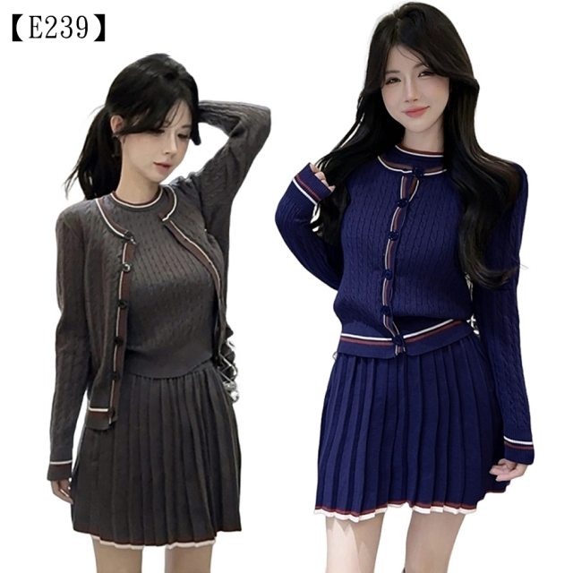 我們巧妙地將修身針織與俏皮百褶結合:上衣的麻花紋理提升了質感;而撞色滾邊則是點睛之筆,讓妳在人群中一眼被鎖定!這不僅是一套衣服,它更是妳的**「青春風格濾鏡」。無論是週末約會、姐妹聚會,甚至想在通勤時偷渡一點可愛,這套都能讓妳在甜美中保有自信的俐落感**!