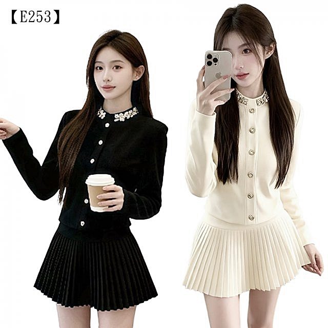 最迷人的是那條超有安全感的A字百褶短裙!這套是兩件分開式套裝,上衣可單獨搭配牛仔褲,裙子可搭配毛衣或衛衣。它的百褶具備挺度、走動時能優雅彈跳,完美遮住臀部和大腿肉,只留下妳最纖細的腰線和大長腿!