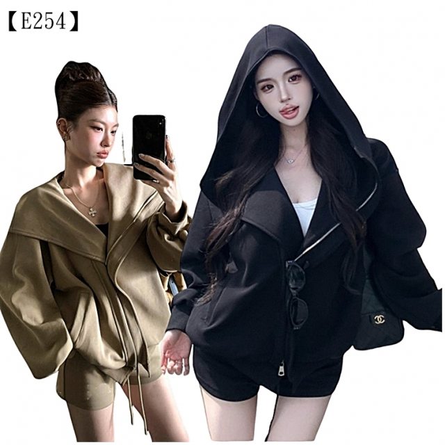 💡 最特別的設計點: 它的超寬連帽和領口,當拉鍊拉下時會形成一個慵懶的大翻領,彷彿披了一件時髦的披肩!這種設計讓妳在追求舒適的同時,絲毫不犧牲時尚感。外套的袖子做了寬鬆的泡泡感(或燈籠感)剪裁,讓手臂顯得更纖細。