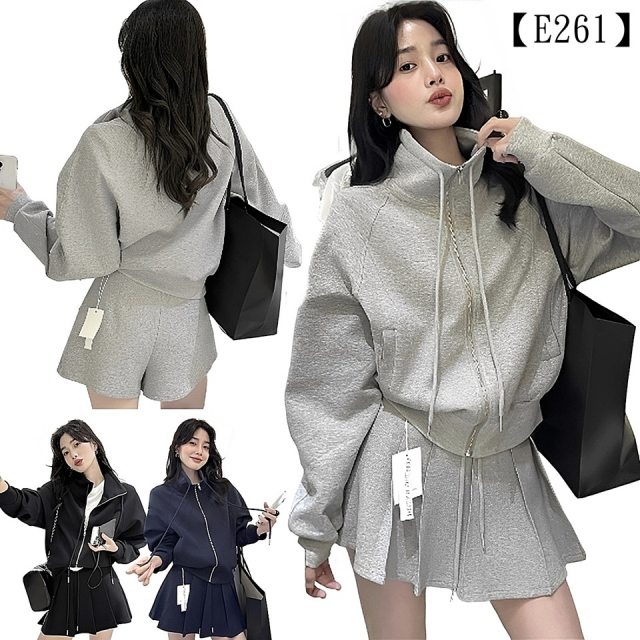 這款套裝巧妙結合了「帥氣立領」與「甜美百褶」,讓妳在運動感中帶點叛逆的小性感。外套的立領設計不僅擋風,還能讓五官更深邃;高腰的下半身設計,讓妳穿上後比例好到像名模!