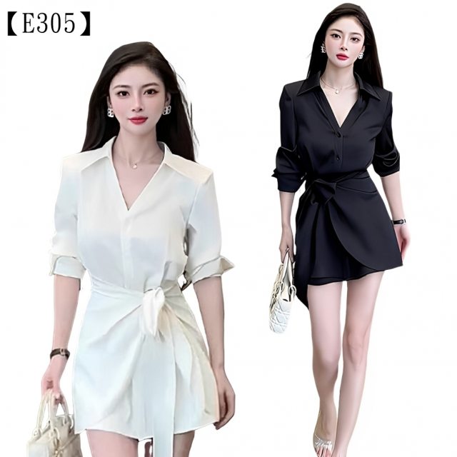 誰說女神一定要穿裙子?這款**「俐落感襯衫連身」**直接帥翻全場!上半身是知性V領襯衫,下半身配上超修飾腿型的高腰短褲,加上那個靈魂繫帶,腰線直接上移5公分!不用煩惱搭配,一套穿上就能出門,既有襯衫的正式感,又有短褲的隨性活潑。不管是配高跟鞋還是靴子,妳就是整條街最颯的那個女孩!