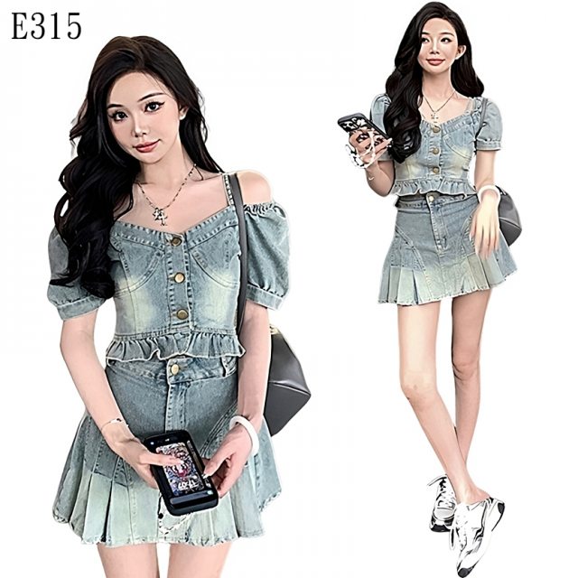 這套完全是「夏日甜酷風」的標配!美式復古的牛仔刷色帶點小叛逆,方領露肩設計又帶點俏皮的小女人味。不用動腦想穿搭,整套穿上直接出門,無論是去咖啡廳拍網美照還是去逛街,保證回頭率爆表!這就是那套讓你穿上就不想脫掉的本命牛仔套裝!