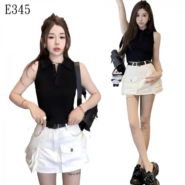 想要擁有美系辣妹的隨性與韓系的精緻?這款三件式工裝套裝就是妳的懶人時尚救星!修身的黑色POLO領上衣,搭配充滿設計感的白色工裝褲裙,繫上附贈的皮帶,完美收出小蠻腰。無論是出遊拍照還是日常逛街,這一套都能讓妳帥氣與美麗並存,穿出逆天大長腿!
