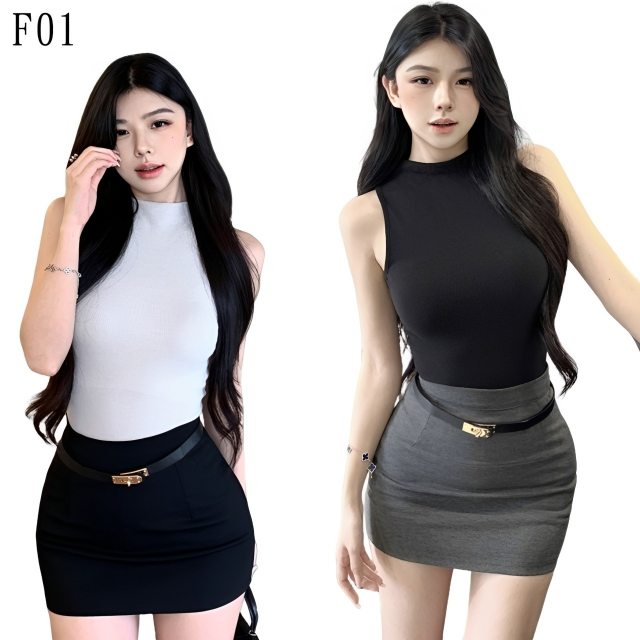 想要擁有高級名媛感?這款三件式削肩套裝讓妳穿出不費力的優雅!修身的微高領上衣搭配顯身材的包臀短裙,再繫上質感皮帶,瞬間提升整體穿搭精緻度。不論是正式聚會、約會還是出席活動,這一套都能讓妳散發優雅迷人的氣質,拍照更是比例超完美!
