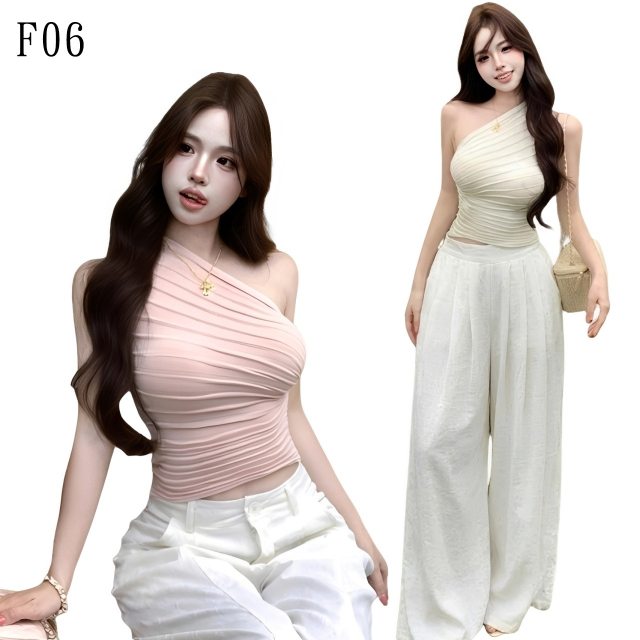 想要擁有仙女般的優雅與氣質?這款抓皺斜肩套裝讓妳美得不費力!修身的斜肩上衣展現高級性感,搭配垂墜感十足的高腰闊腿褲,不管是約會還是度假拍照,都能穿出滿分的飄逸感。柔和的配色讓妳瞬間變身溫柔小姐姐,穿上它,妳就是最有氣場的街頭女神!