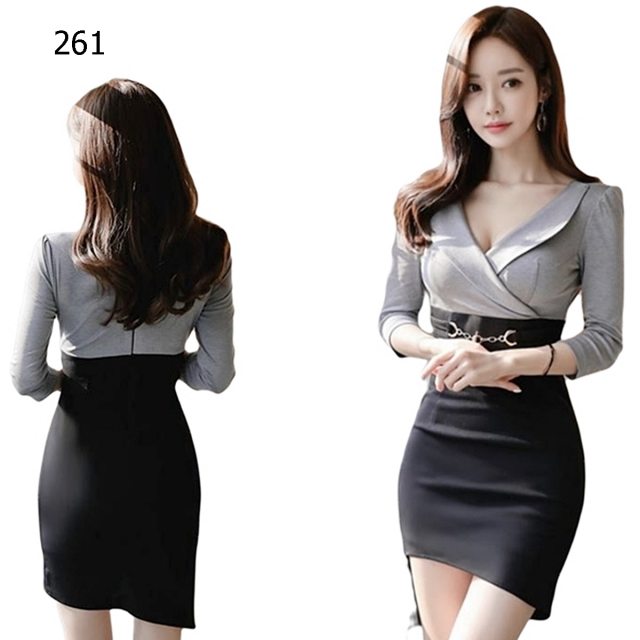 氣質V領七分袖不規則長袖連身裙 商品編號:261