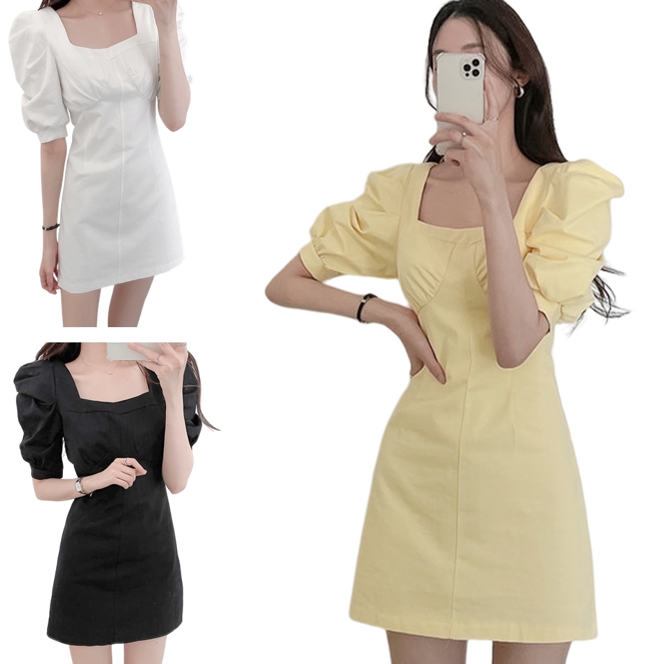 氣質時尚收腰泡泡袖連身裙 編號:A248