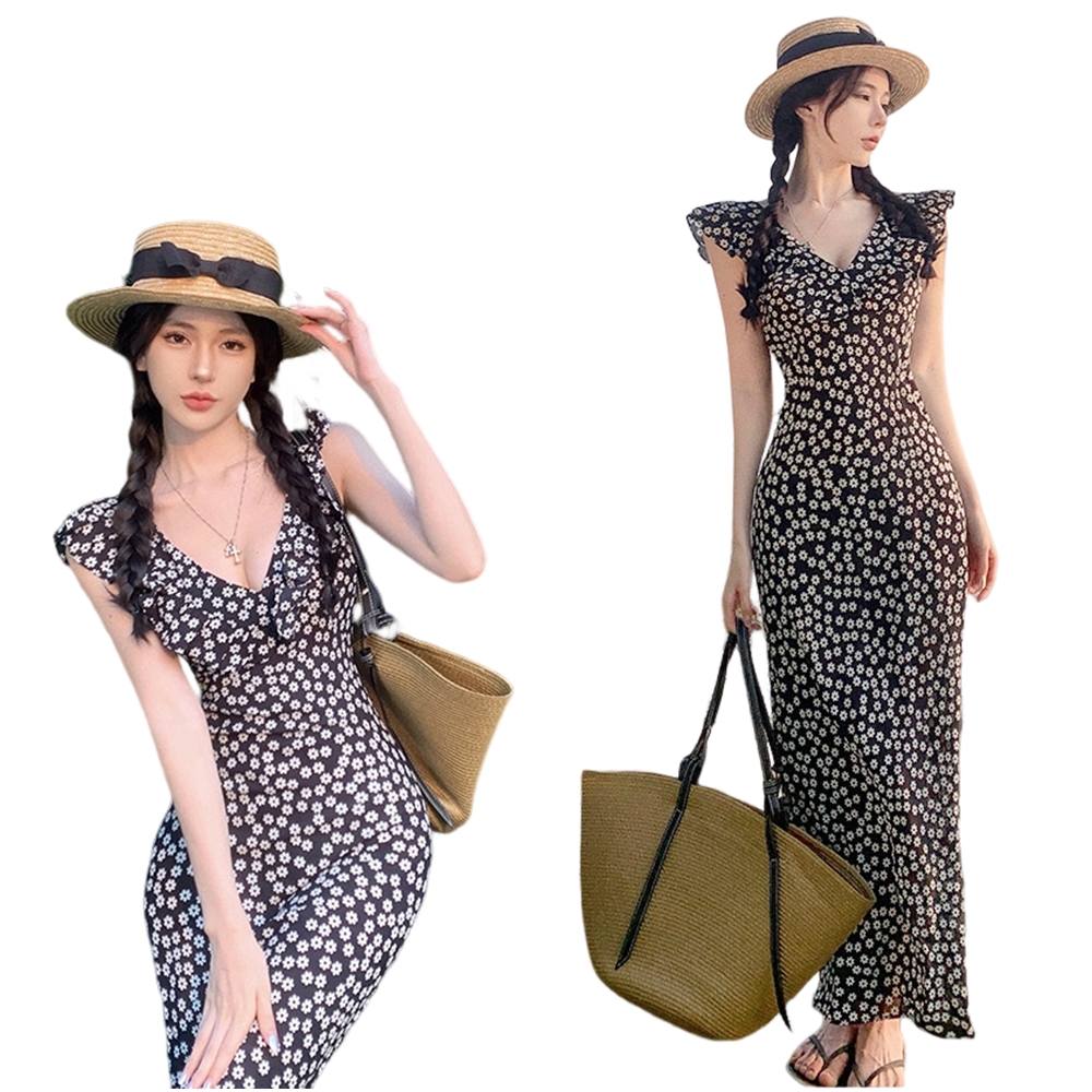 迷人又肆意的碎花夾雜著春的泥土氣息 早春時節太適合穿這樣一條氛圍感的碎花裙啦 V領設計透露著小性感