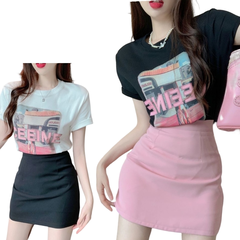 準備好成為夏日甜心了嗎?這套「美式復古印花T恤 + 高腰A字短裙」兩件式套裝,絕對是妳衣櫥裡不能缺少的命定單品!T恤上的復古印花設計,彷彿將妳帶回陽光普照的加州,搭配俐落又顯瘦的黑色A字短裙,不僅能完美修飾腿部線條,還能讓妳的比例看起來更修長。無論是日常出遊、閨蜜逛街還是約會,這套都能讓妳輕鬆駕馭,一穿上就充滿自信,展現妳的青春活力!