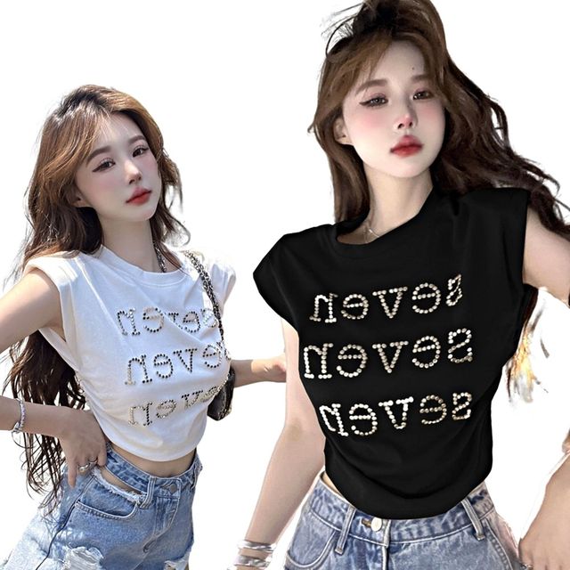 燙鑽短版短袖上衣 編號:B291