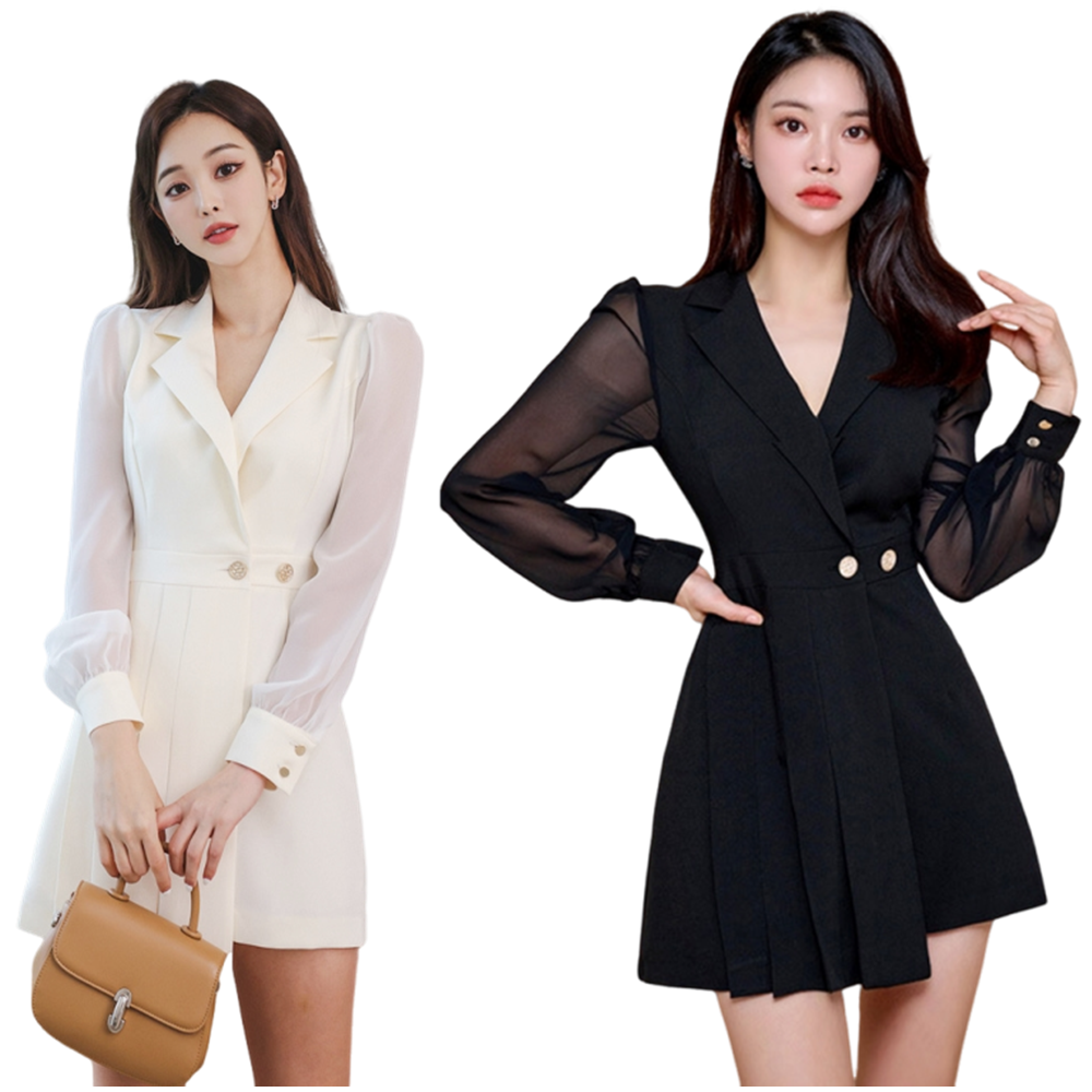 時尚西裝領連身裙 編號:B409