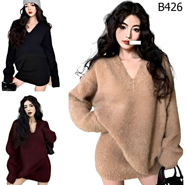 寬鬆v領長袖針織毛衣+高腰短裙 套裝 編號:B426