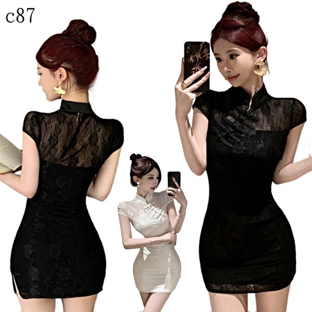 這款C87黑色蕾絲改良式旗袍洋裝,專為追求時尚與個性的現代女性量身打造。我們將傳統旗袍的優雅精髓與現代流行的蕾絲元素完美結合,打造出既復古又性感的獨特風格。高領盤扣設計保留了東方旗袍的經典韻味,而肩部與背部的透膚蕾絲拼接,則為整體造型注入了一絲若隱若現的性感魅力。修身顯瘦的剪裁設計,能夠完美貼合您的身形,突顯迷人腰線,讓您在任何場合都能自信地展現曼妙身材。選用舒適透氣的親膚面料,讓您在美麗的同時,也能享受舒適自在的穿著體驗。無論是日常穿搭、約會、派對或正式宴會,這款黑色蕾絲旗袍洋裝都是您展現獨特品味與氣質的絕佳選擇。