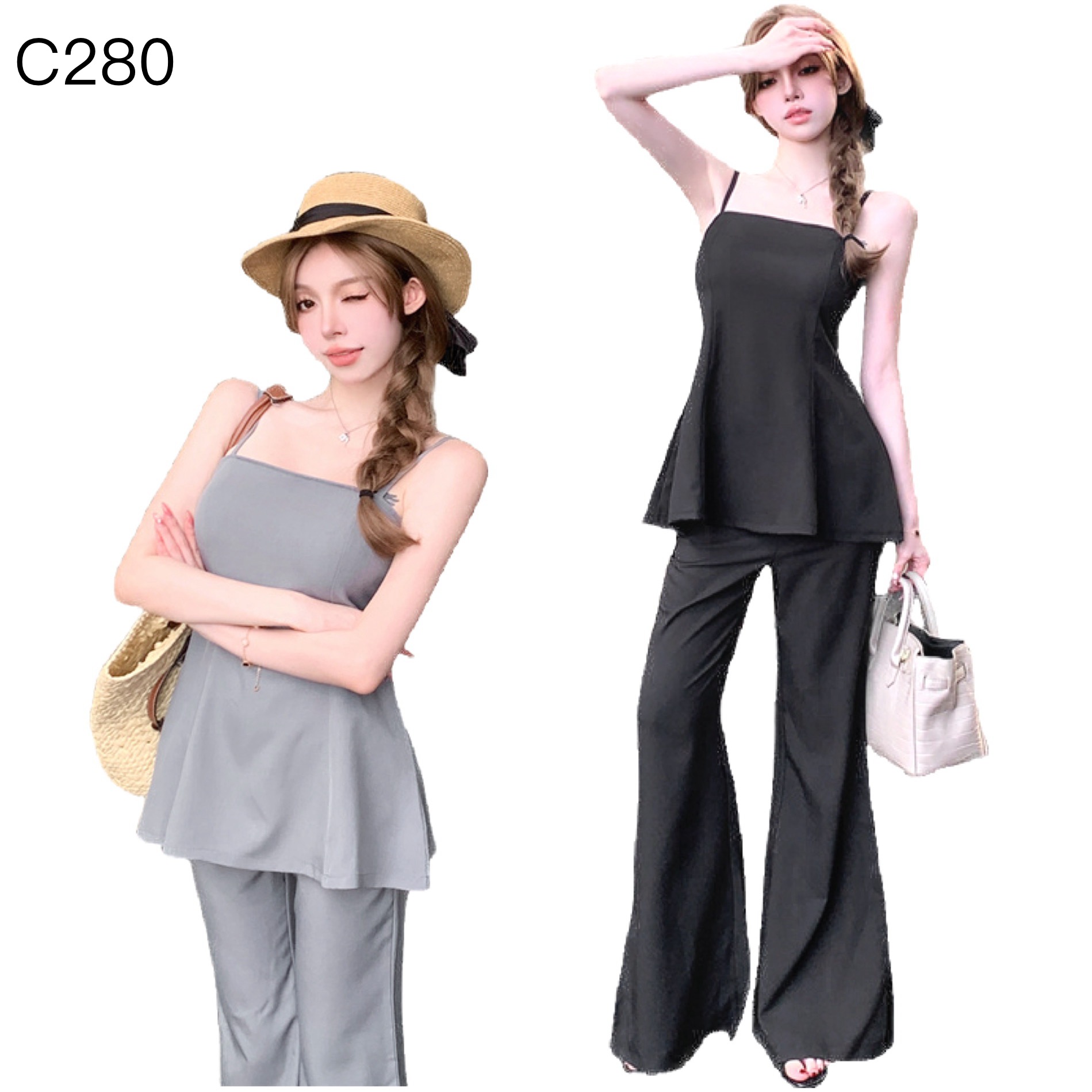 中長款吊带背心+高腰开叉長褲套裝編號:C280