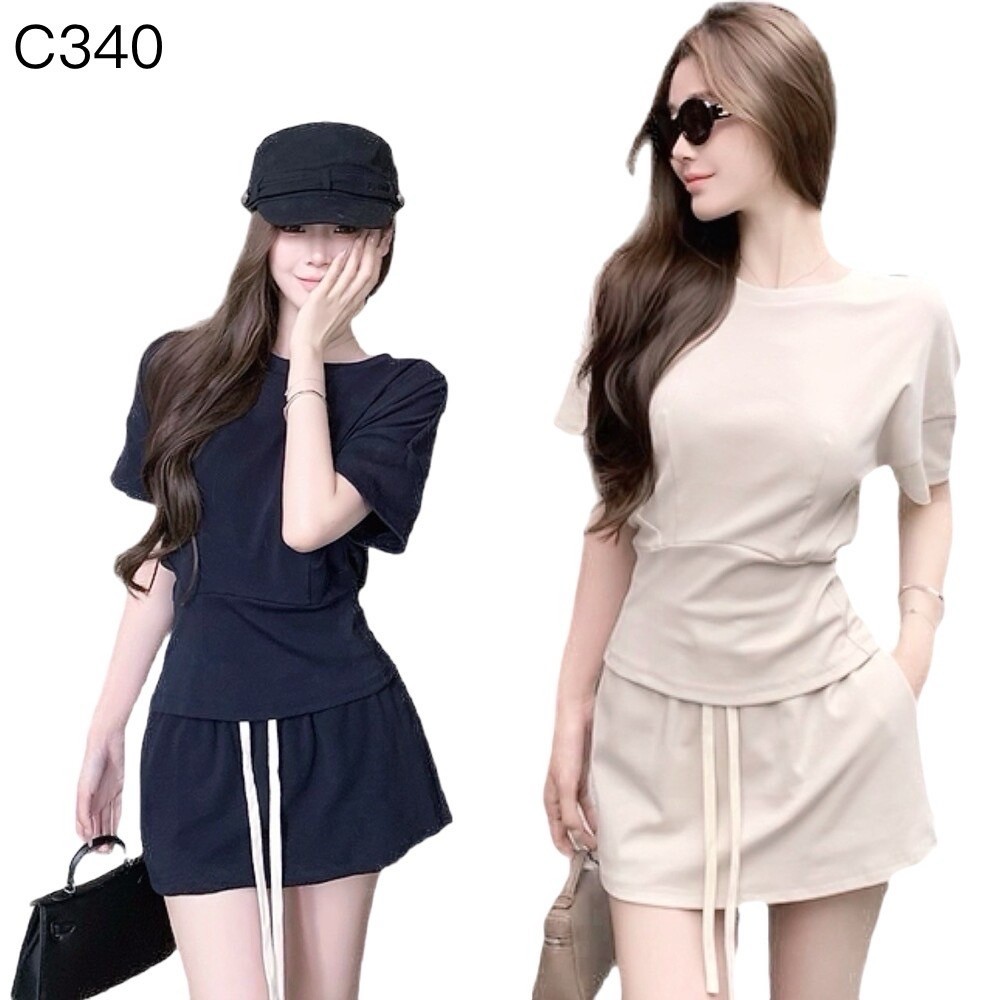 短袖女+抽繩褲裙 套裝編號:C340