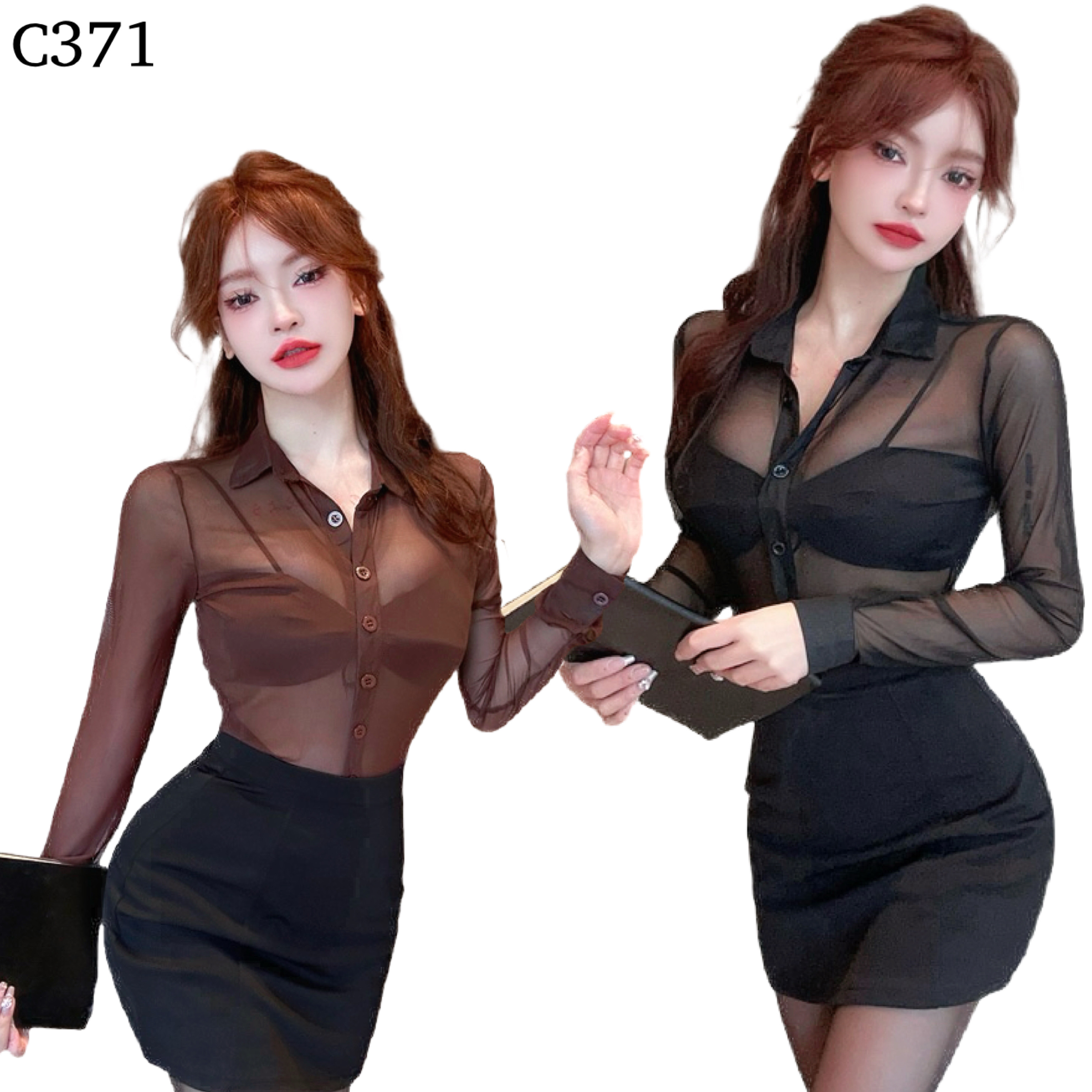 透视网纱长袖上衣+包臀裙套裝編號:C371