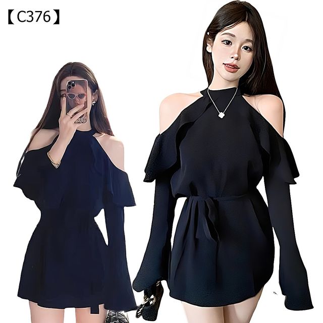 【C376 鎖骨殺手洋裝】 完美結合了 甜美與火辣 的雙重魅力。它採用了今年最流行的 掛脖+露肩設計,精準展現女性最性感的鎖骨和香肩,同時巧妙地避開了副乳的困擾。
