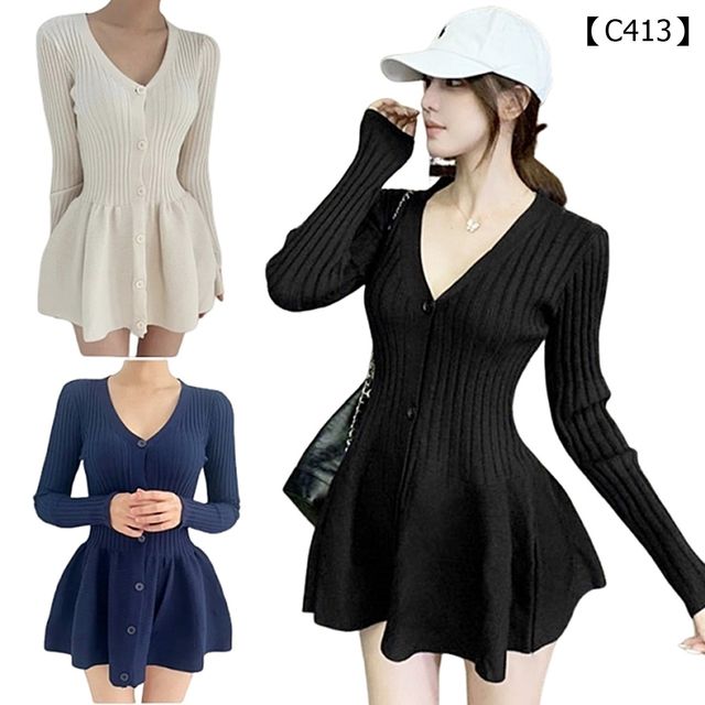 【C413 V領收腰針織】 不只是件針織衫,它是妳的 「身材優化神器」!