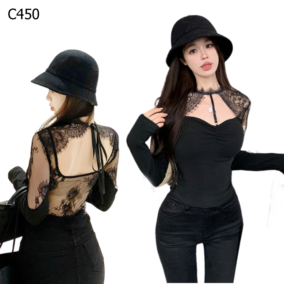 蕾絲鏤空氣質內搭美背綁脖女百搭上衣編號:C450