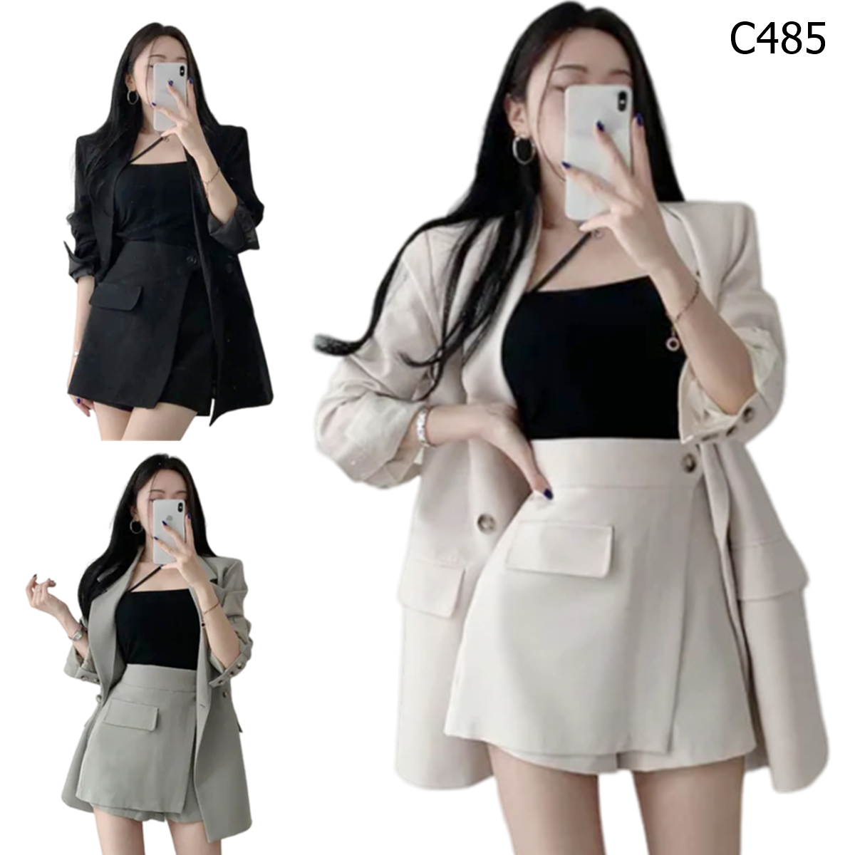 西裝外套+短褲裙 套裝 編號:C485
