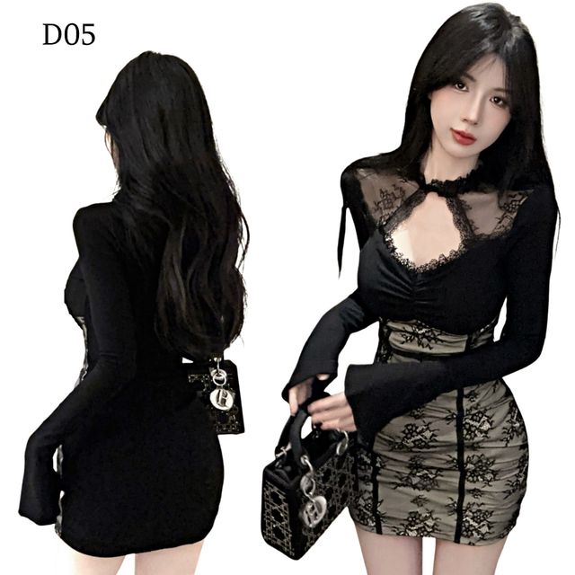 蕾絲鏤空緊身包臀裙 編號:D05