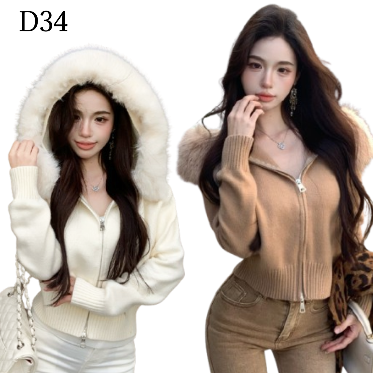 連帽拉鍊寬鬆毛衣外套 編號:D34