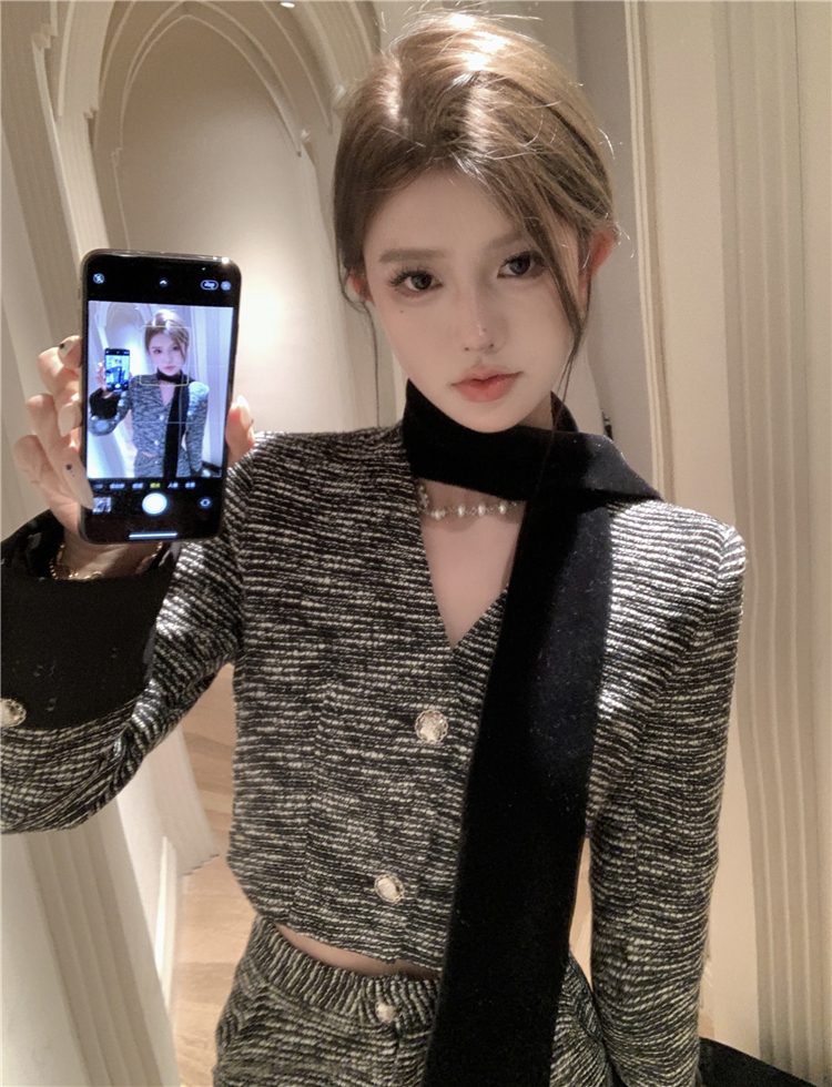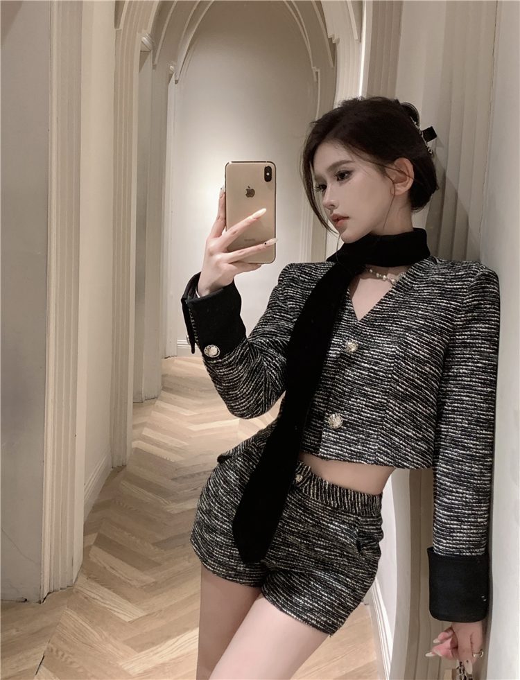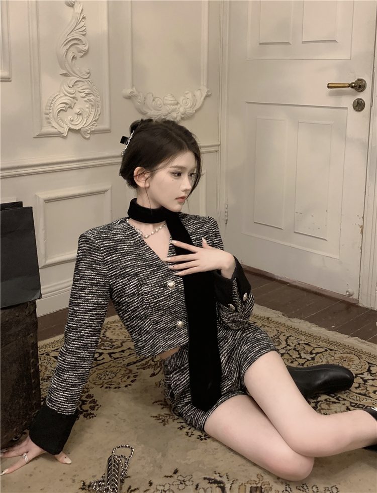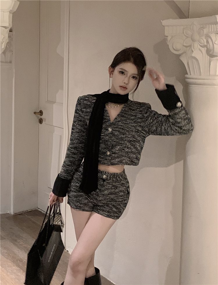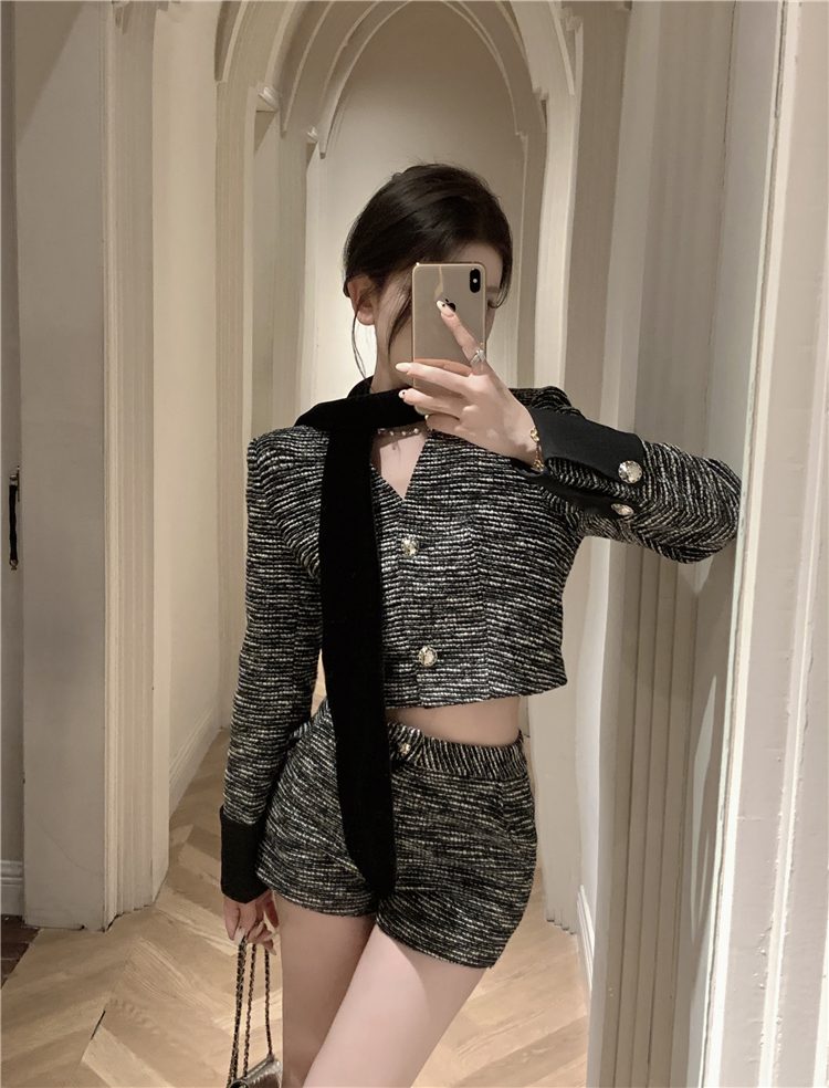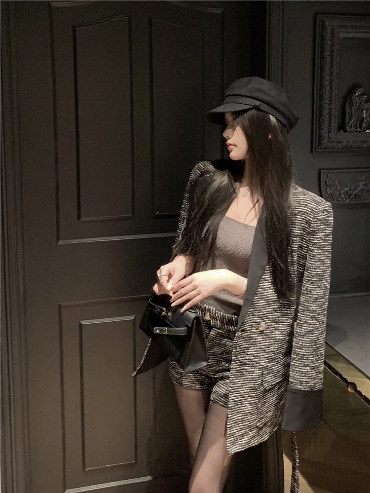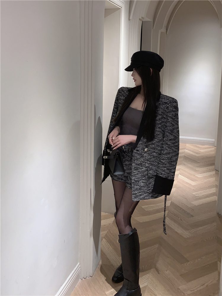 小香長/短外套+高腰A字短褲 套裝編號:D38