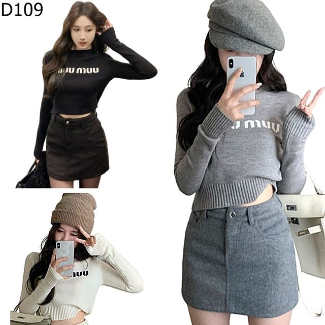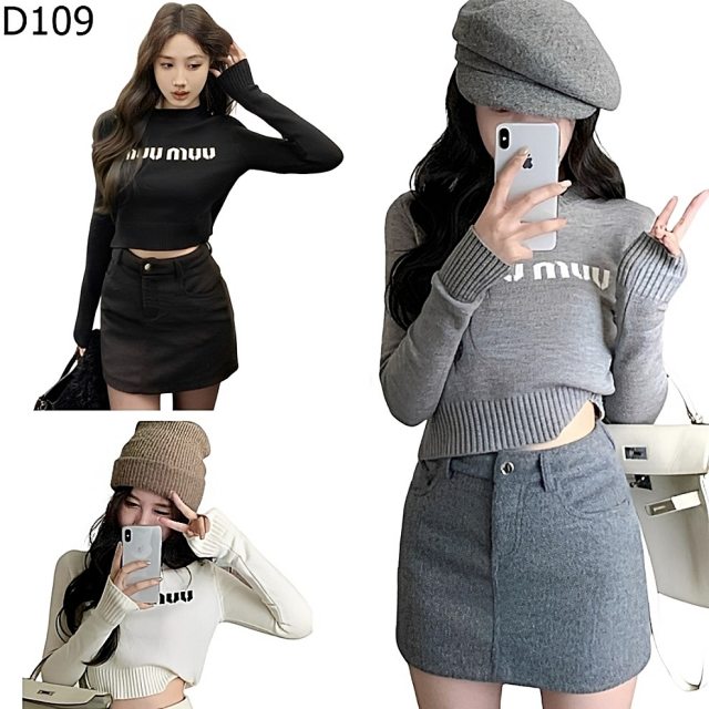 這款 $D109$ 韓系短版針織上衣+高腰A字短裙防走光褲套裝,絕對是妳今年秋冬衣櫥裡最吸睛的單品!我們特別設計了活潑短版的針織上衣,搭配視覺超顯瘦的高腰A字短裙,一穿上立刻讓妳的比例像Model一樣完美!