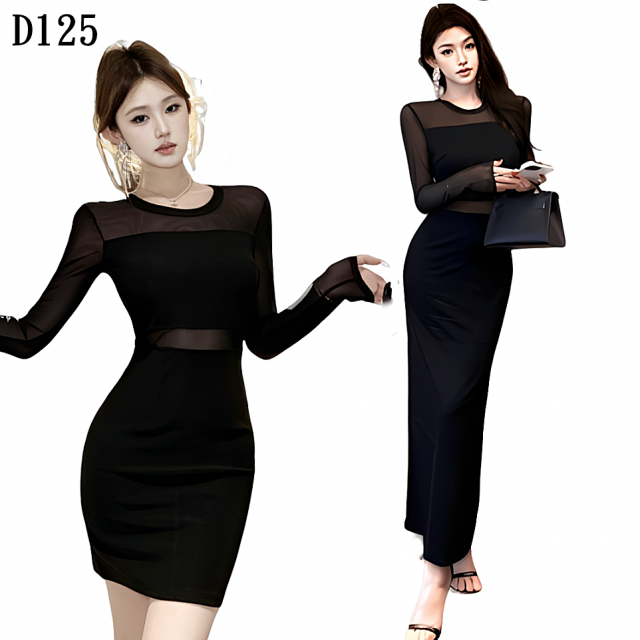 它不是普通的黑裙子,我們加入了超IN的透膚網紗拼接設計,巧妙地在鎖骨、手臂和腰部做出**「若隱若現」的誘惑感,讓妳的性感高級而不低俗!高彈力面料緊緊地HOLD住妳的S曲線,完美展現妳的辣妹身材**!