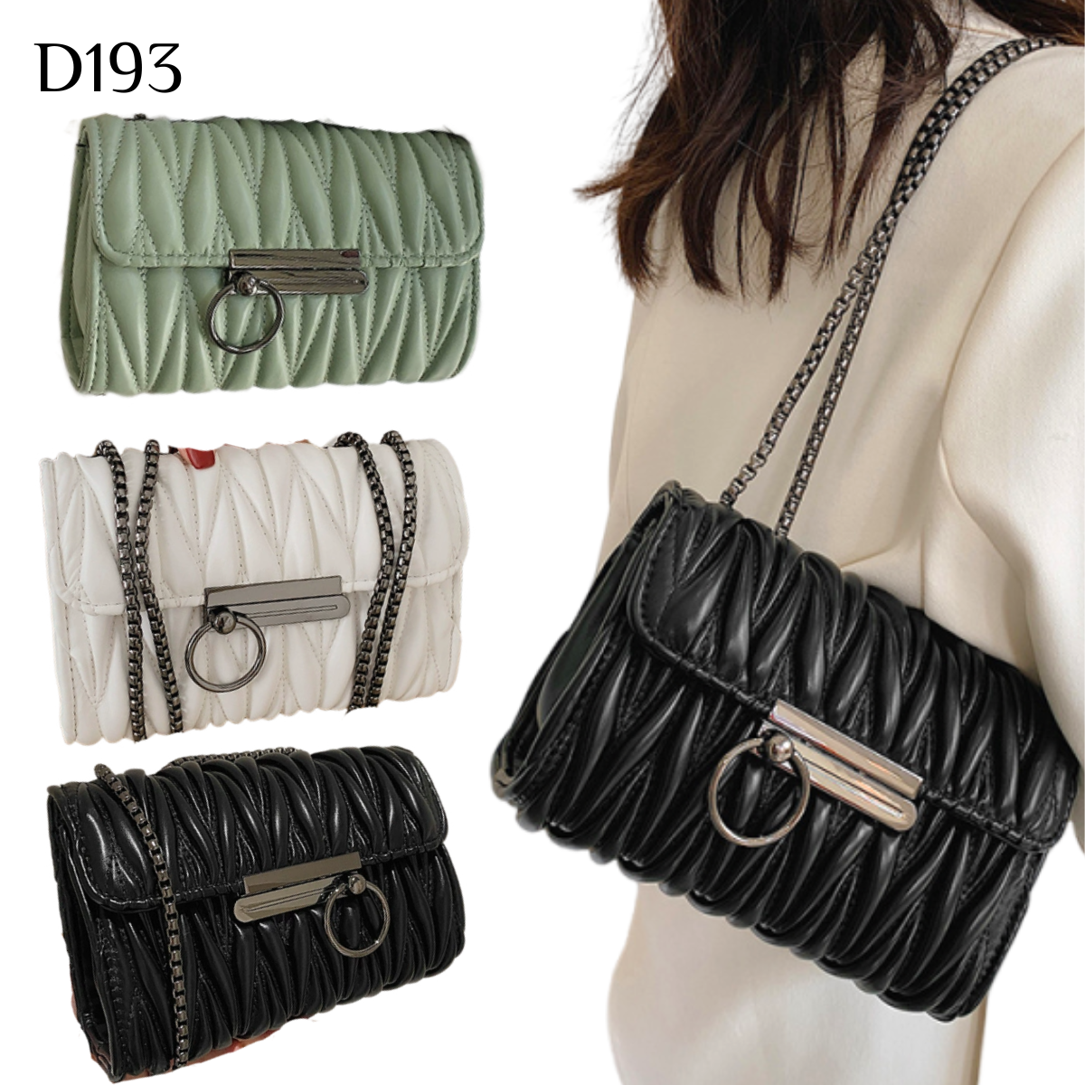 皺褶寬肩帶單肩斜挎包 編號:D193