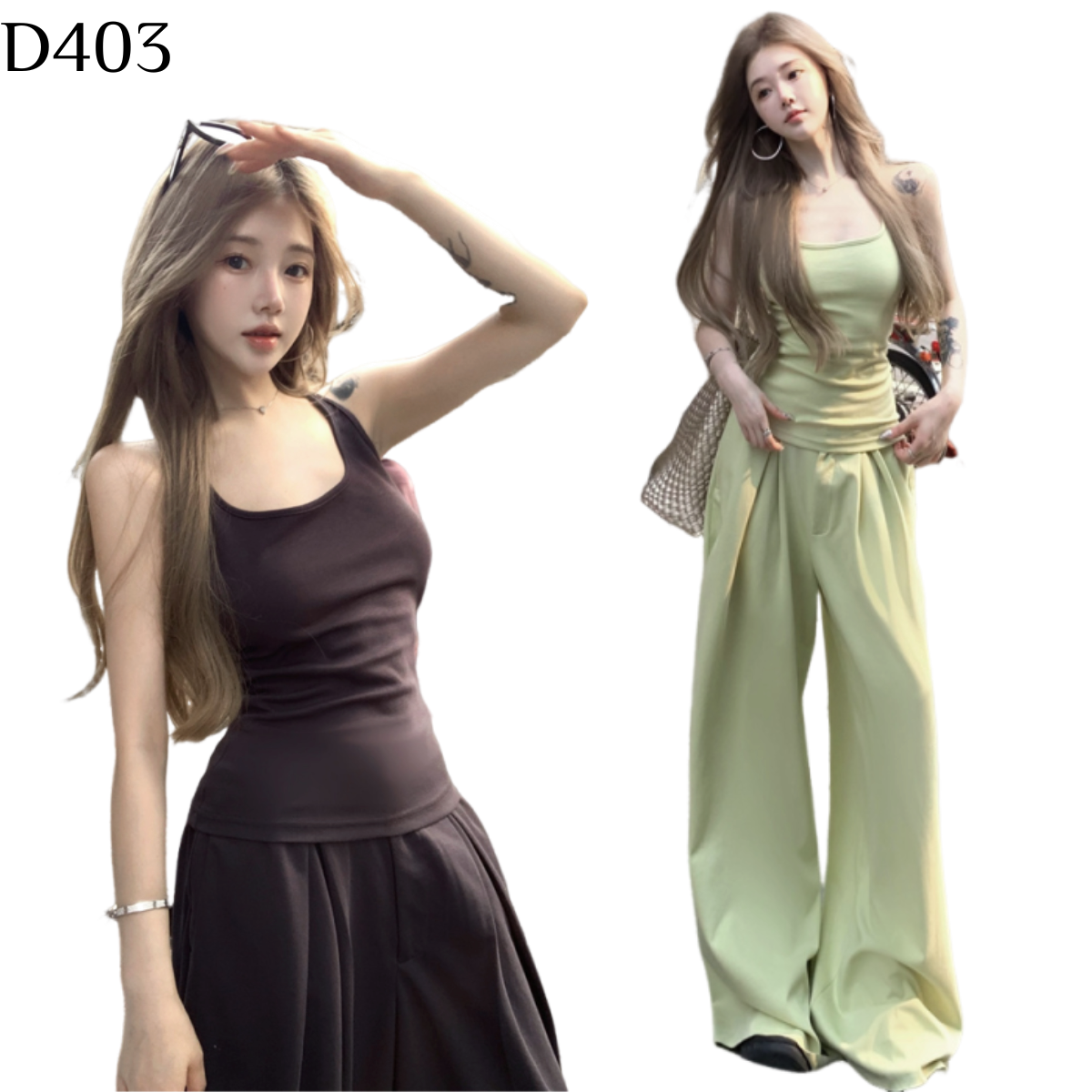 厭倦了每天煩惱穿什麼嗎?這款超仙氣的吊帶背心+垂感闊腿褲套裝絕對是你的救星!我們特別選用高質感垂墜面料,不僅親膚透氣,更能在視覺上拉長你的腿部線條,讓你一秒擁有逆天大長腿!貼身的吊帶背心完美勾勒身形,搭配飄逸的闊腿褲,巧妙遮住大腿肉肉,展現迷人又自信的魅力。無論是約會、逛街還是度假,一套搞定所有穿搭煩惱。多種顏色任你挑選,趕快帶回家,成為最閃亮的時尚小姊姊吧!