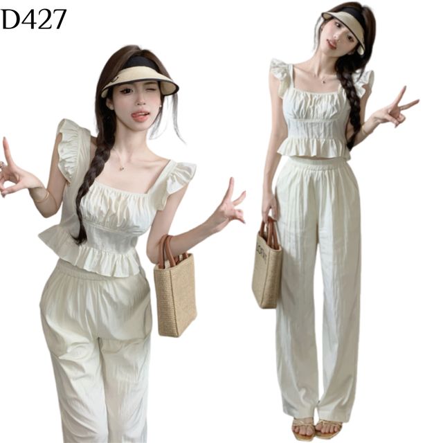想成為人群中最亮眼的存在嗎?這款木耳飛袖+闊腿褲套裝絕對是你的不二之選!甜美的木耳邊飛袖設計,為你增添俏皮感,同時完美修飾手臂線條。高腰鬆緊闊腿褲不僅穿著舒適,更能修飾腿型,讓你輕鬆擁有大長腿。精選親膚透氣面料,炎炎夏日也能保持清爽。無論是度假、約會還是日常逛街,一套搞定,讓你美得毫不費力!