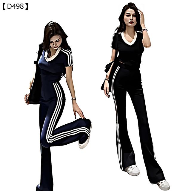 還在煩惱出門要穿什麼嗎?這套「條紋拼接微喇叭褲套裝」絕對是妳的最佳選擇!它完美結合了運動與時尚,讓妳一穿上就充滿活力!V領上衣設計修飾臉型,搭配側邊條紋的微喇叭褲,不僅讓妳的腿看起來又長又直,還能展現妳的時尚品味!修身的剪裁,輕鬆穿出迷人的S曲線,讓妳的每個角度都美得無懈可擊!無論是逛街、約會還是日常休閒,這套都能讓妳輕鬆駕馭,美出新高度!