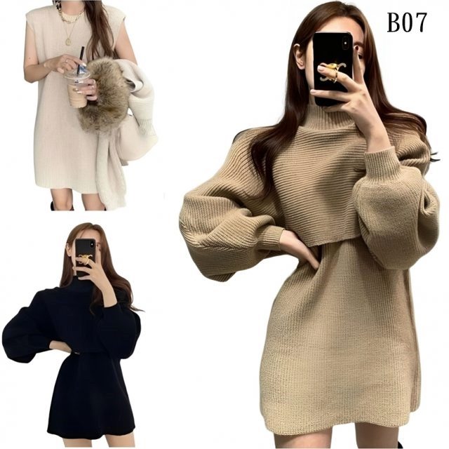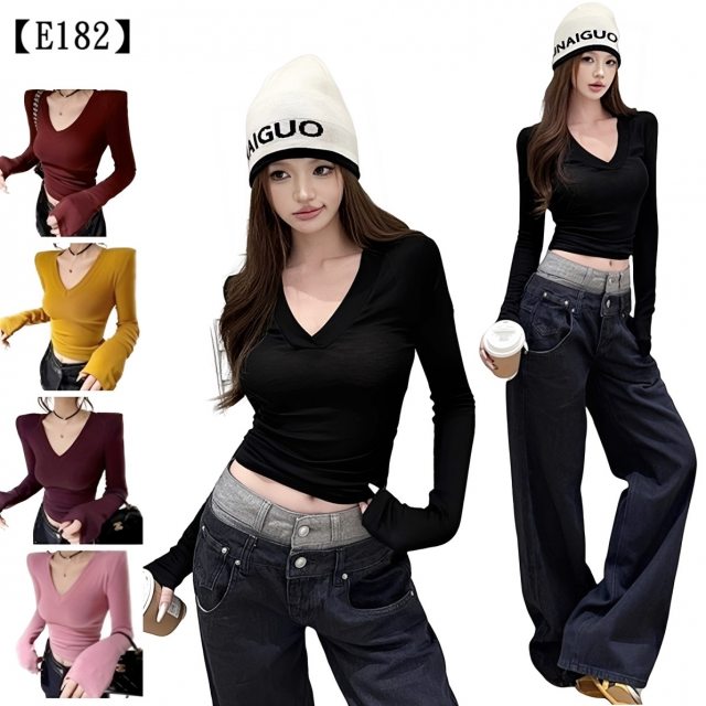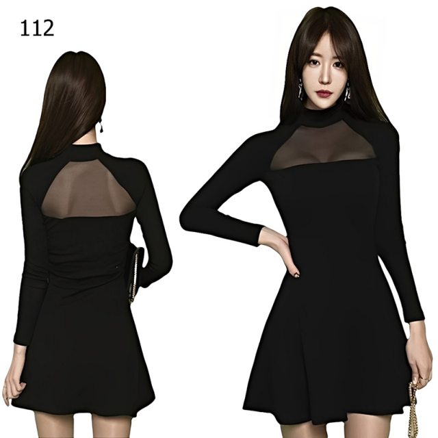 撞色修身鈕釦長袖洋裝 俏皮甜美韓系短裙 顯瘦包臀心機小禮服【E231】